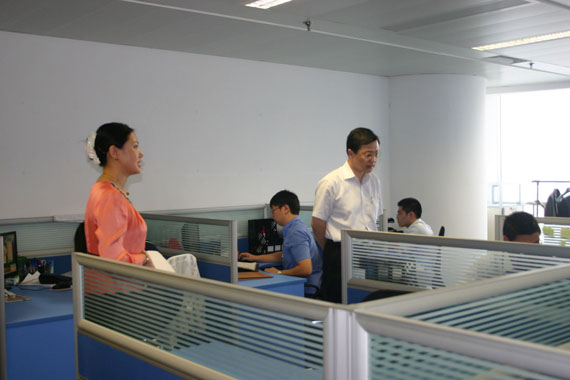藍海集團董事長王彥博女士親切接待并陪同諸葛區(qū)長一行視察了員工的日常工作情況與公司環(huán)境。王彥博女士對入駐普陀兩年來,普陀區(qū)各方面對企業(yè)發(fā)展予以的支持和關(guān)心表示感謝,并就公司人力資源全方位服務(wù)和開發(fā)的情況作了介紹。之后雙方就人力資源服務(wù)行業(yè)的發(fā)展以及進一步的規(guī)劃進行了充分的溝通。