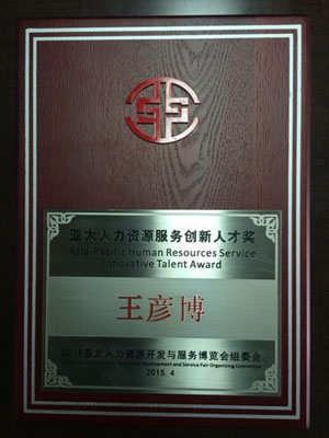 2015年4月18日至19日,第十三屆中國國際人才交流大會、2015亞太人力資源開發(fā)與服務(wù)博覽會暨第十一屆中國人力資源服務(wù)業(yè)高峰論壇在深圳舉辦。上海藍(lán)海人力資源股份有限公司董事長王彥博女士以高票當(dāng)選,榮獲“亞太人力資源服務(wù)創(chuàng)新人才獎(jiǎng)”。